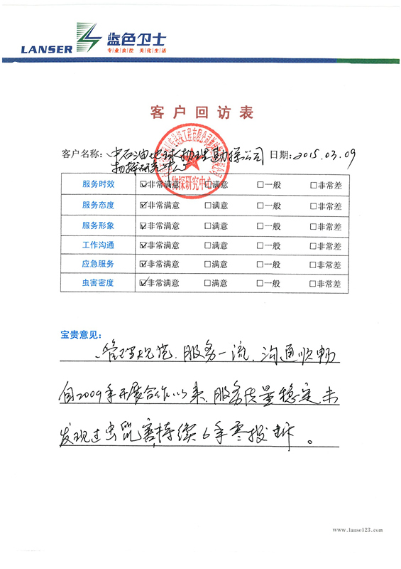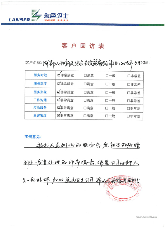 • 藍色衛(wèi)士與深圳潔鵬除蟲建立互動關系2015.06.18